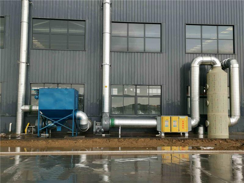 1、集气系统部分:在车间机器产生废气的具体部位加上集风系统,然后安装相对应的管道,风机作为动力将废气抽出;